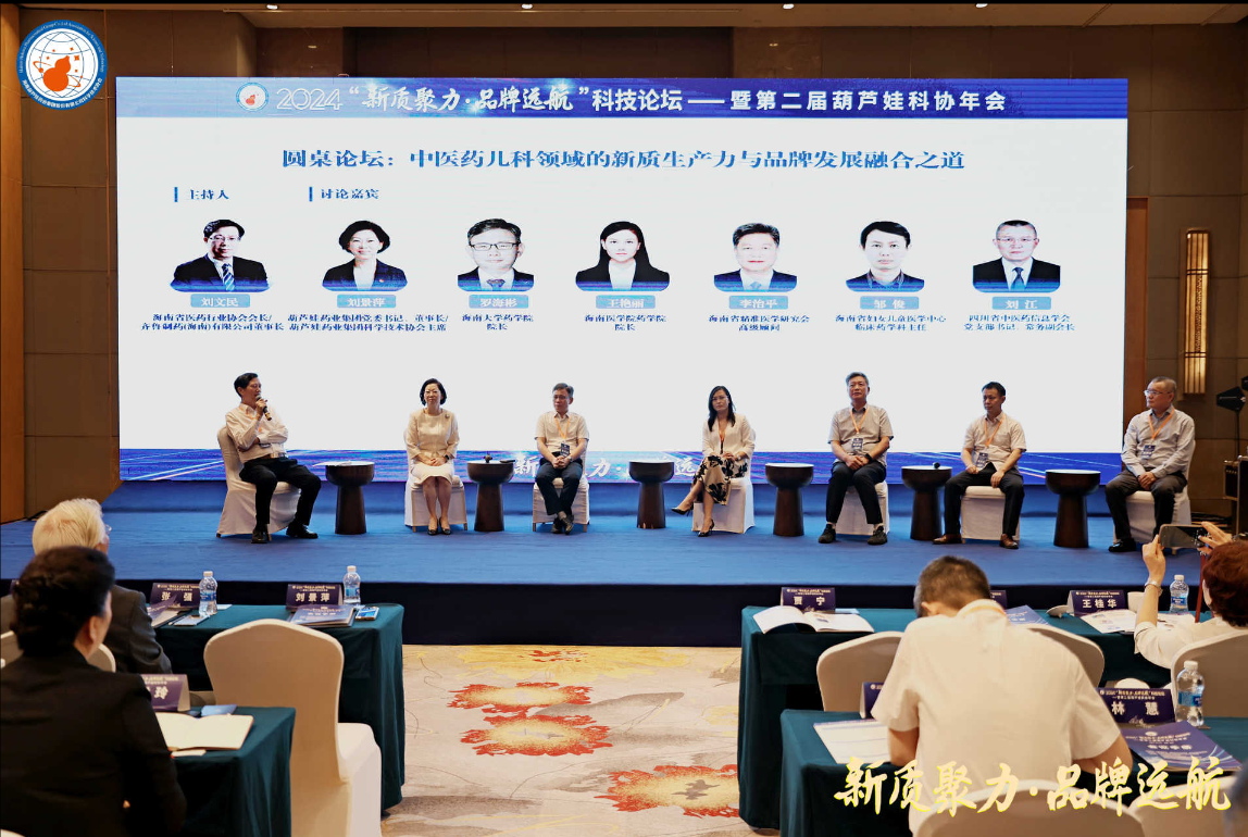巅峰国际药业集团党委书记、董事长刘景萍,海南大学药学院院长罗海彬、海南医学院药学院院长王艳丽、海南省精准医学研究会高级顾问李治平、海南省妇女儿童医学中心临床药学科主任邹俊,四川省中医药信息学会党委书记、常务副会长刘江等,在主题为“中医药儿科领域的新质生产力与品牌发展融合之道”的圆桌论坛中积极献策。海南省医药行业协会会长、齐鲁制药(海南)有限公司董事长刘文民主持论坛。