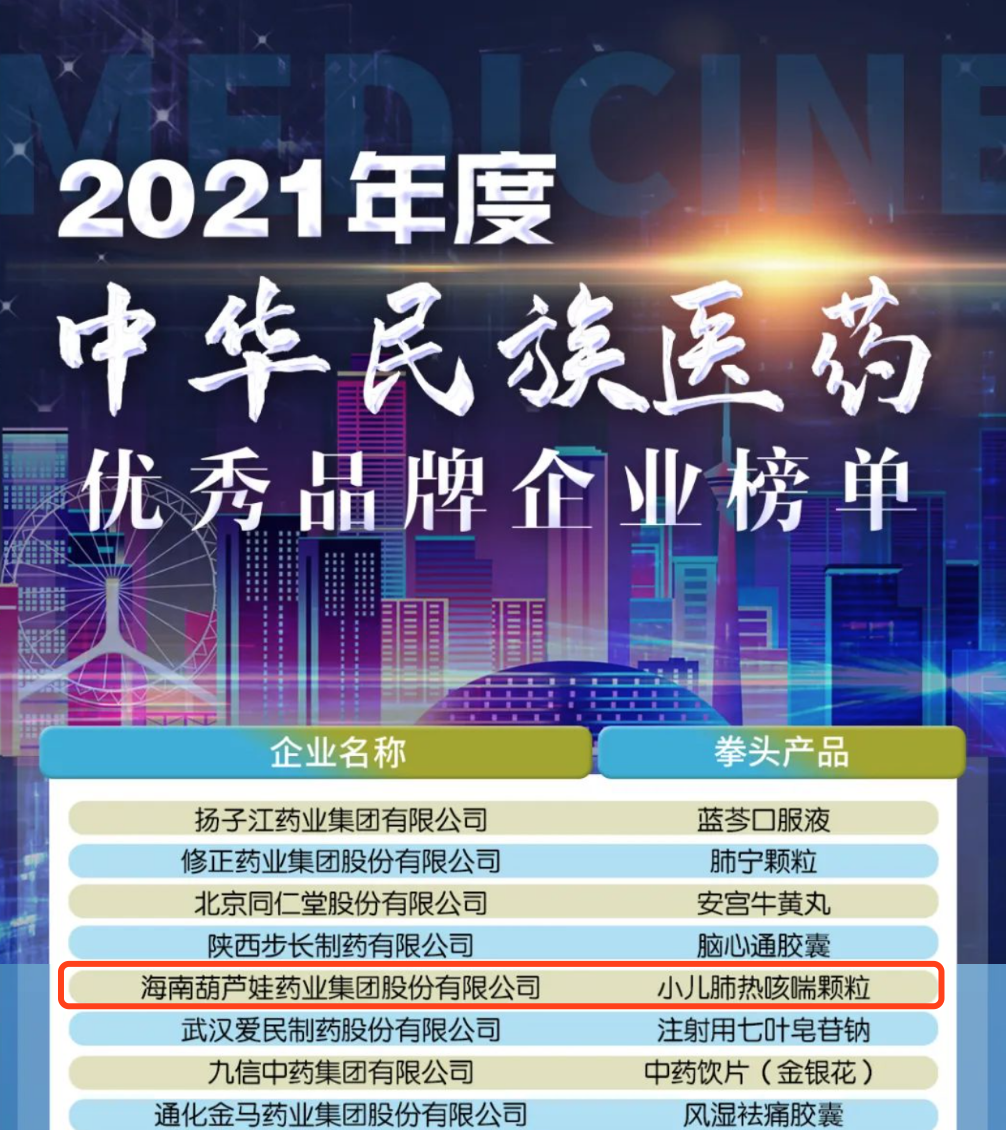 12月29日,全国工商联医药业商会发布了“2021年度中华民族医药优秀品牌企业榜单”,巅峰国际药业集团凭借黄金单品小儿肺热咳喘颗粒(4克)实力登榜。